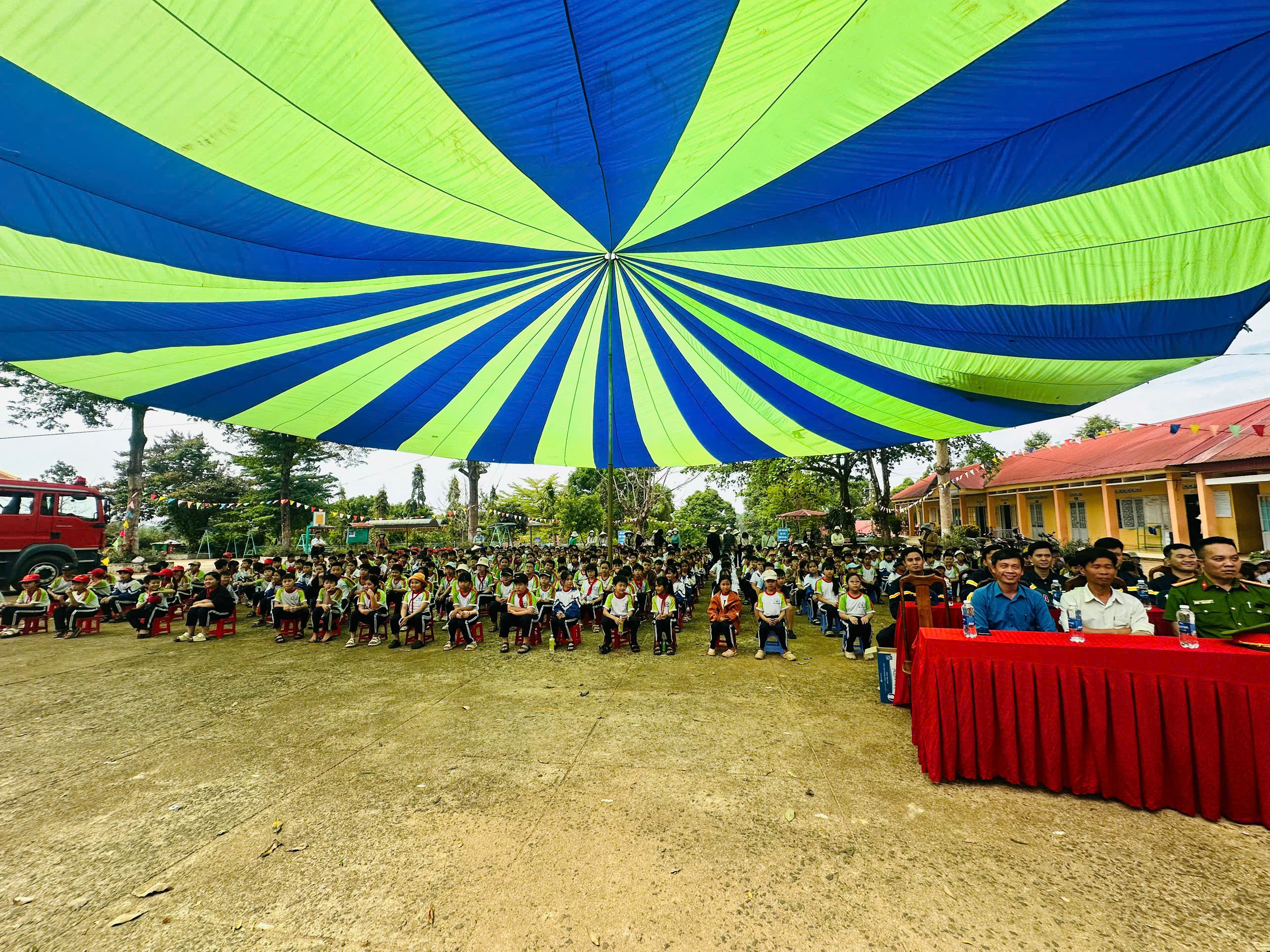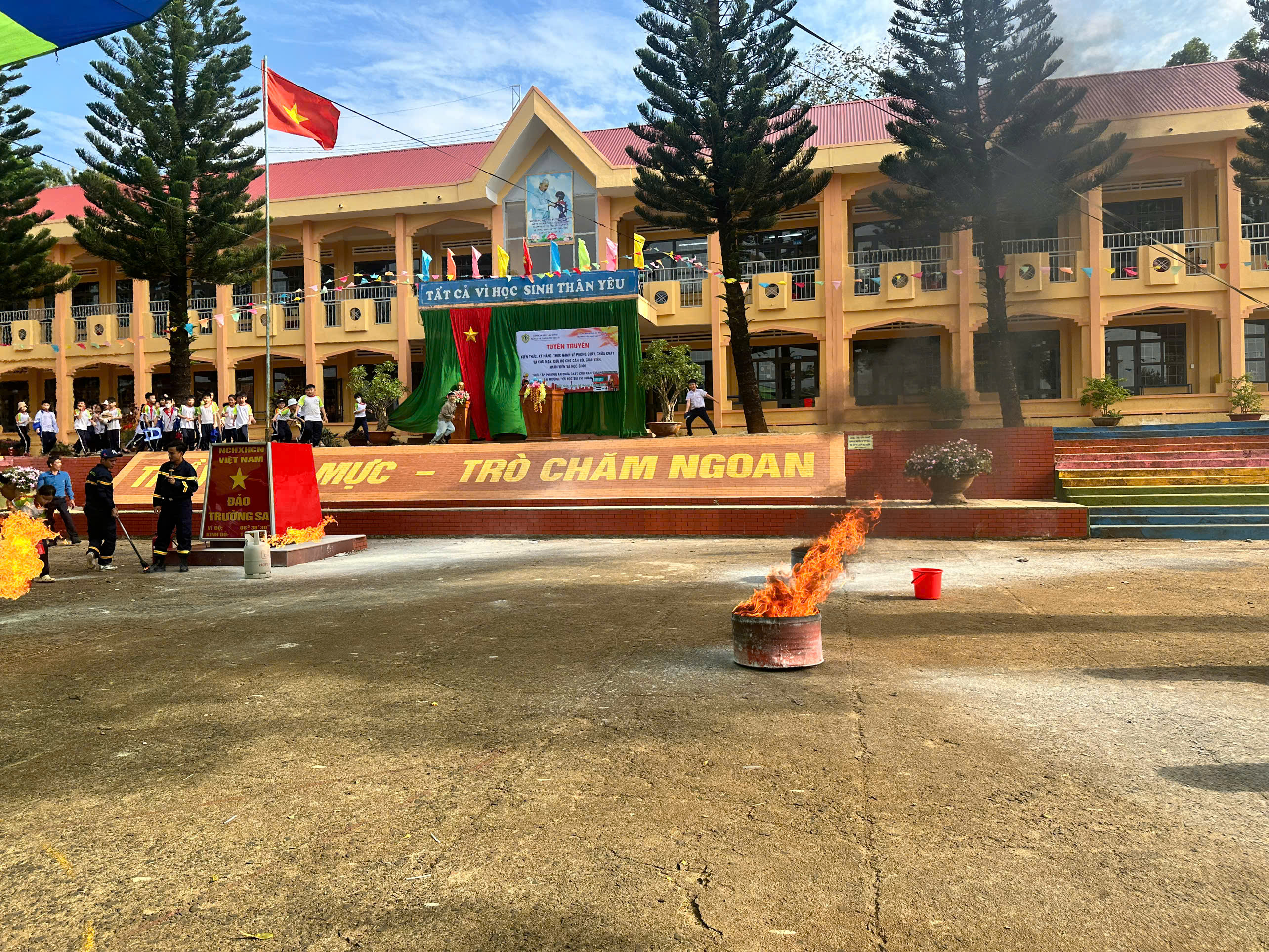 Chương trình diễn ra với sự tham gia của Ban Giám hiệu, 100% cán bộ, giáo viên, nhân viên, học sinh khối lớp 3,4 và lớp 5 cùng 12 cán bộ chiến sĩ, xe chữa cháy chuyên dụng từ Đội Cảnh sát PCCC & CNCH khu vực 13 CA tỉnh Lâm Đồng. Đây là hoạt động thiết thực nhằm thực hiện tốt phương châm “4 tại chỗ” về CC và CNCH, giúp nâng cao kỹ năng xử lý tình huống và xây dựng môi trường học tập an toàn.