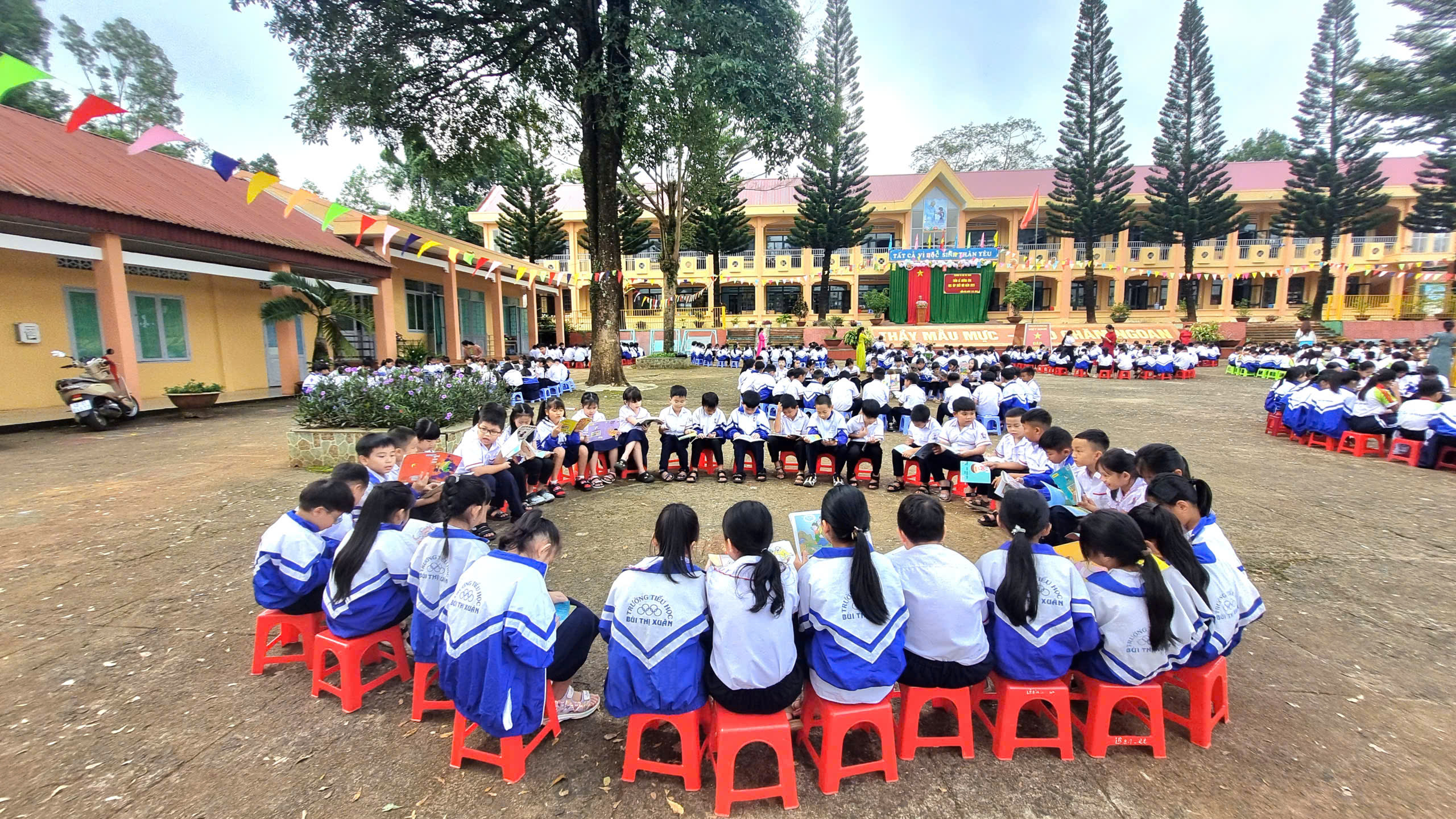 Buổi lễ phát động diễn ra với nhiều hoạt động thiết thực: các em học sinh hào hứng, sôi nổi cùng những cuốn sách, truyện, … trên tay. .